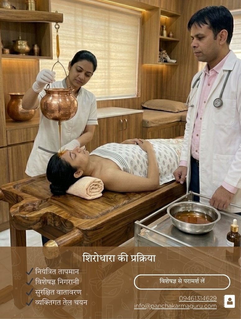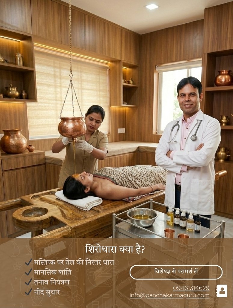 “Shirodhara is a powerful neuro-calming therapy that directly influences the central nervous system. When performed with proper oil selection and medical supervision, it provides profound relief in stress, insomnia, and psychosomatic disorders.” Dr. Shivram Sinwar, MD (Ayu.)