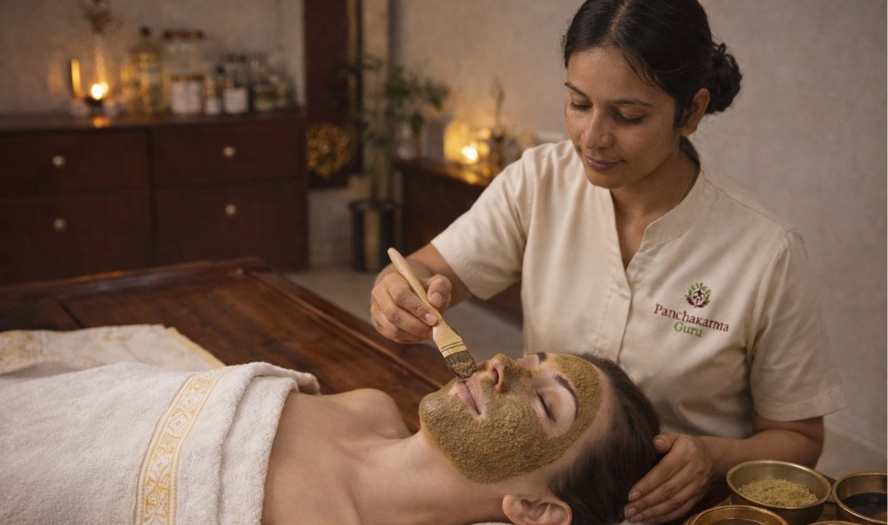 At Panchakarma Guru, Ayurvedic facial therapy is performed using traditional Ayurvedic techniques combined with professional skin assessment.
