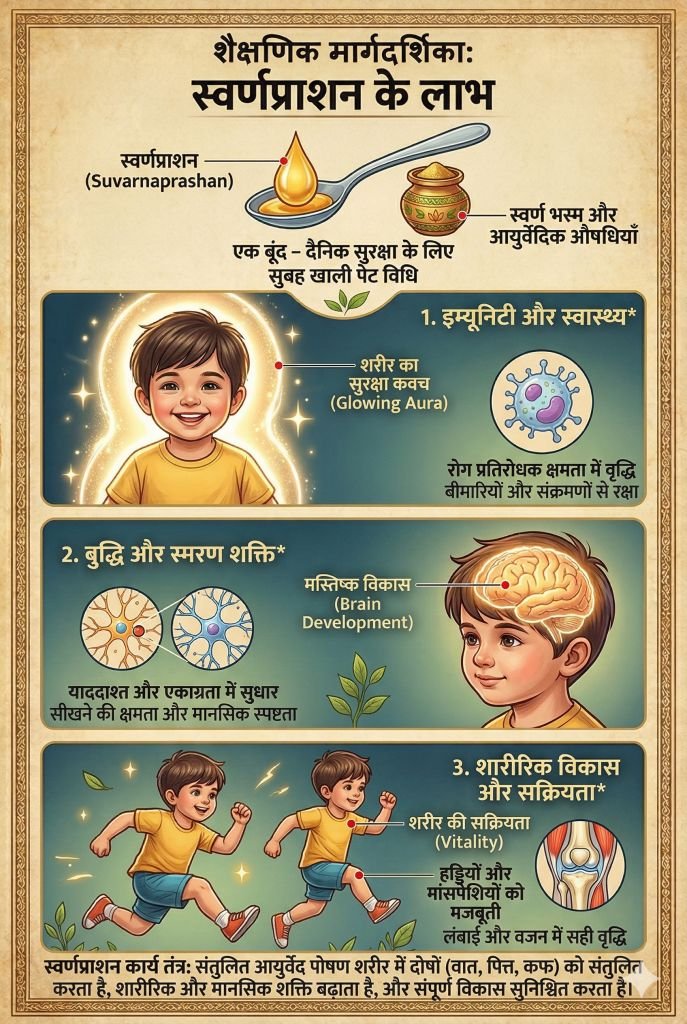 Suvarnaprashan is not only preventive but also supportive in managing various common childhood conditions by strengthening immunity and improving resistance.