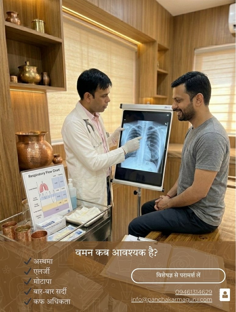 Vamana is recommended to restore respiratory health, metabolic balance, and immune strength.